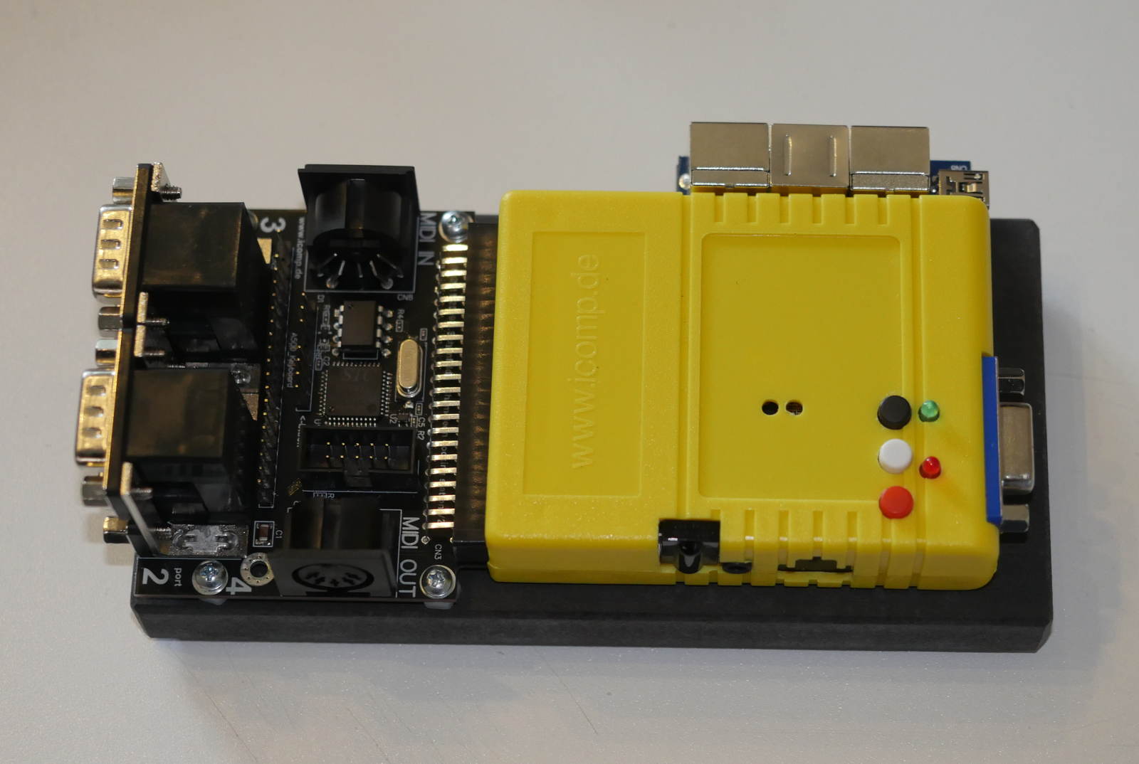 Furthermore, you can also connect a C64/VIC20 keyboard or an Amiga 500 keyboard (even both at the same time). Future cores for the Chameleon will also implement MIDI functionality.